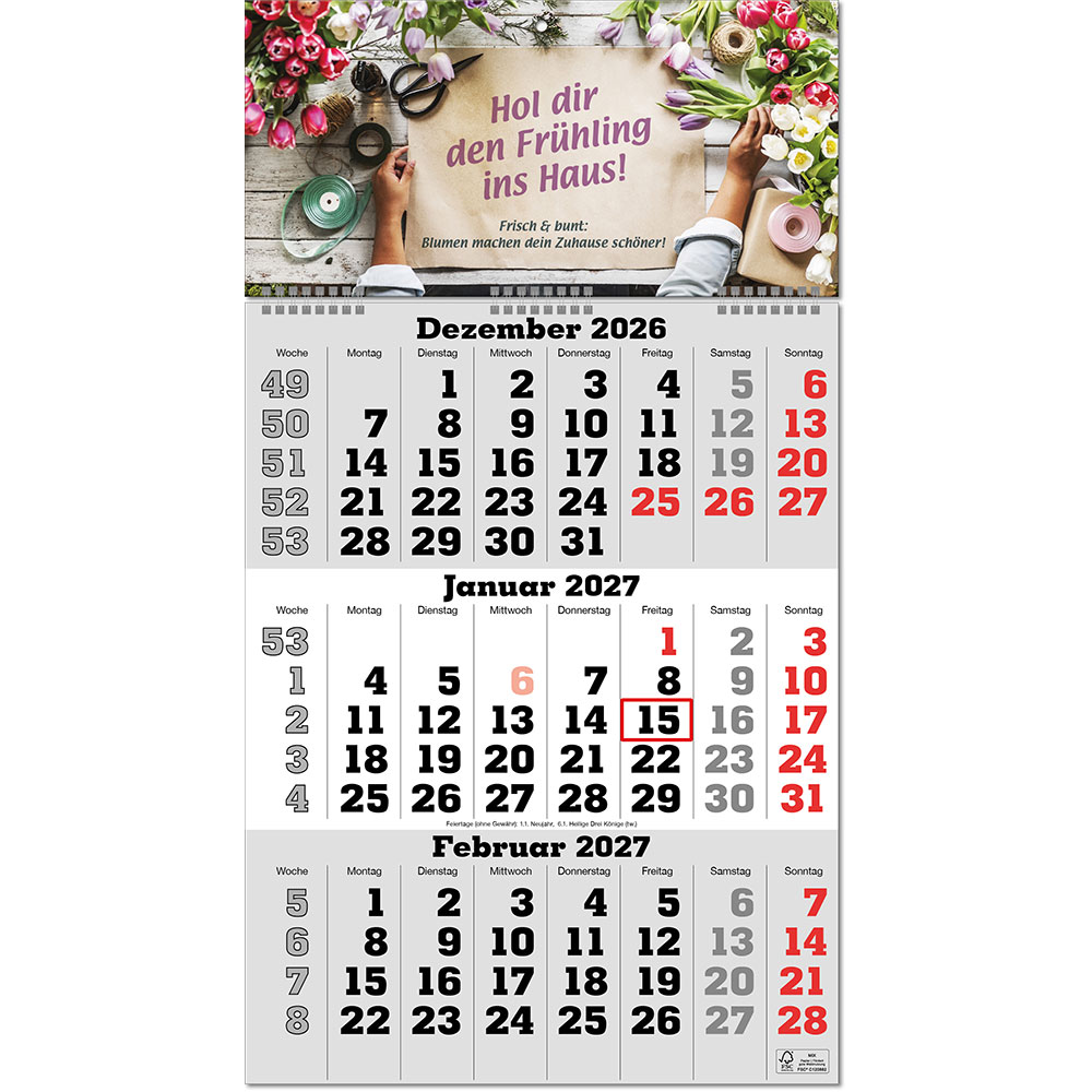 Farben für Untergrund des Vor- und Nachmonats grau Hauptmonat weiß Feiertage rot |