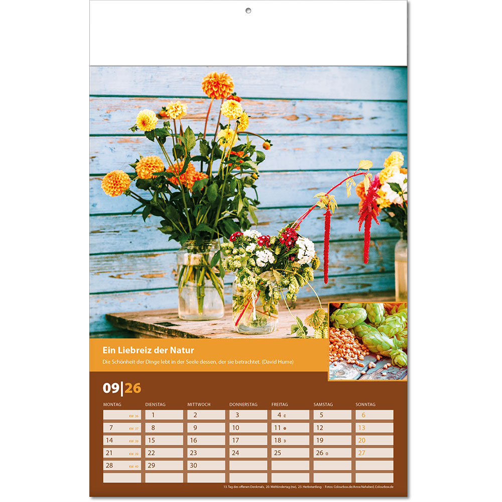 Angabe der Kalenderwochen Angabe der Mondphasen Notizfähiges Kalendarium |