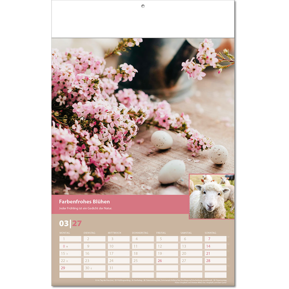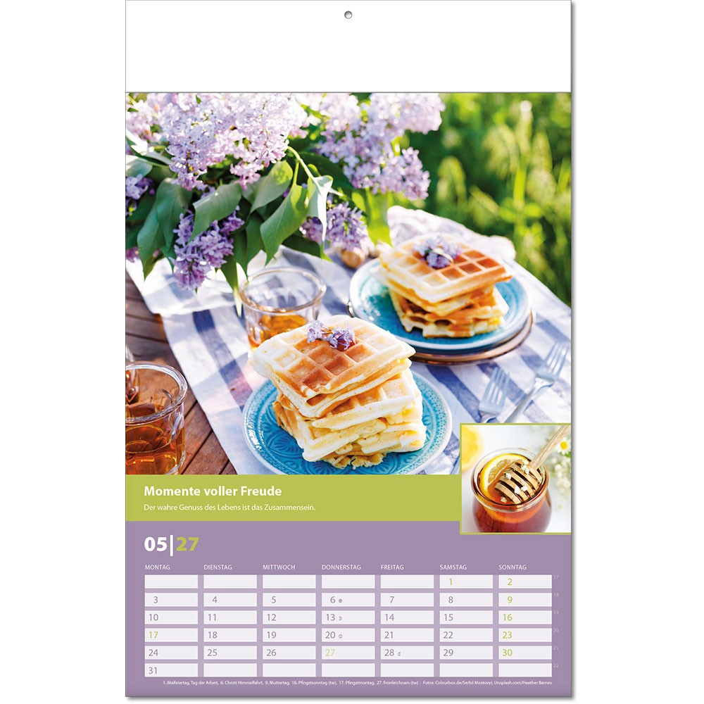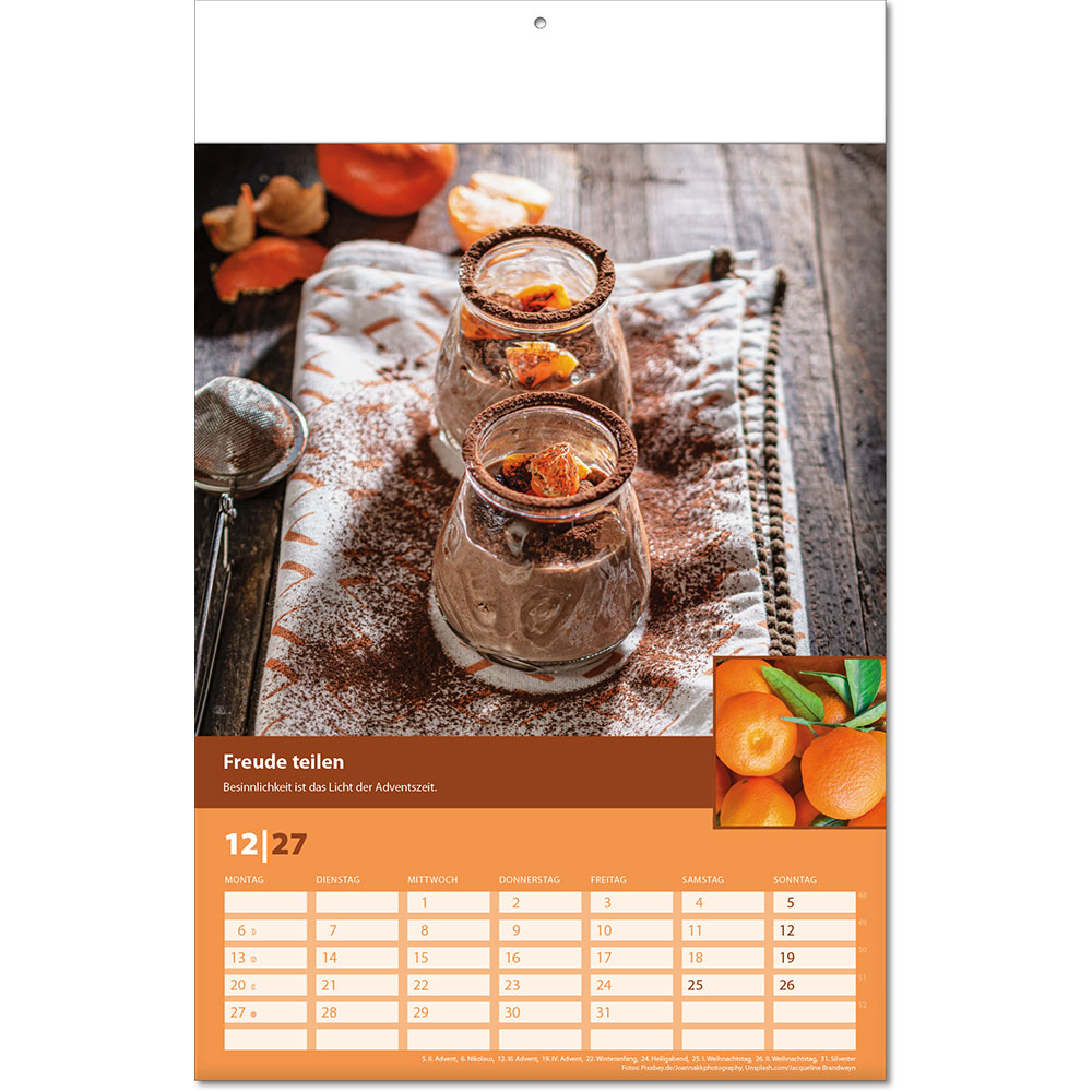 Angabe der Kalenderwochen Angabe der Mondphasen Notizfähiges Kalendarium |