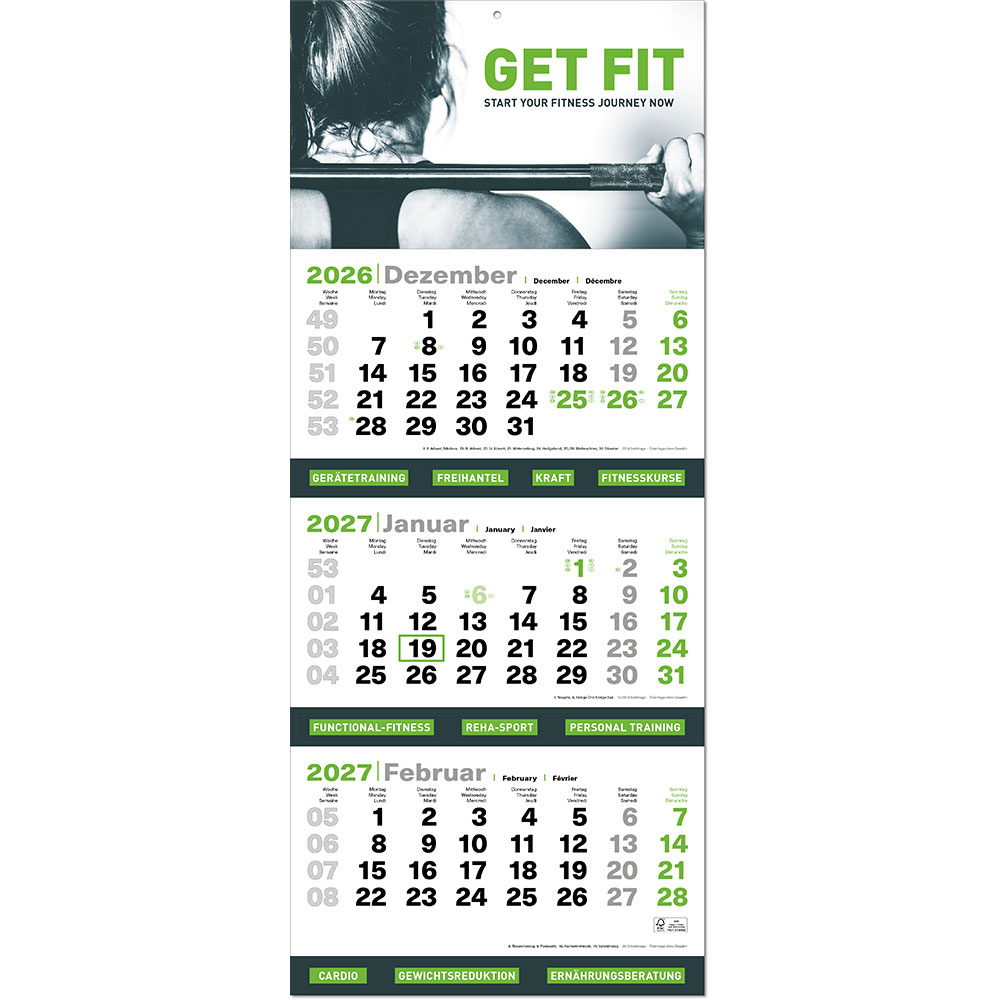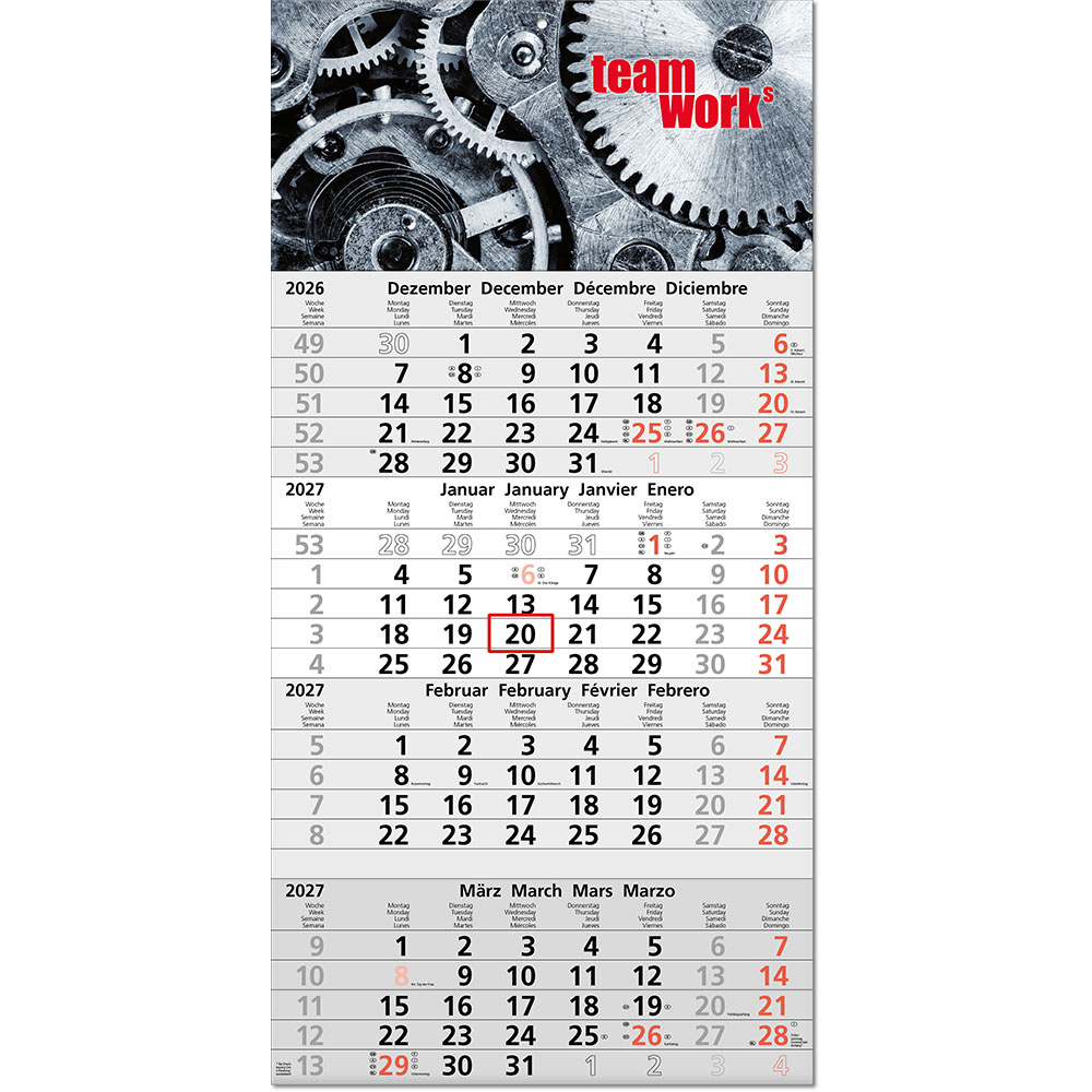 | Umfang | 1 Rückwand, 3 aufgeklebte Kalenderblöcke mit je 12 Monaten |